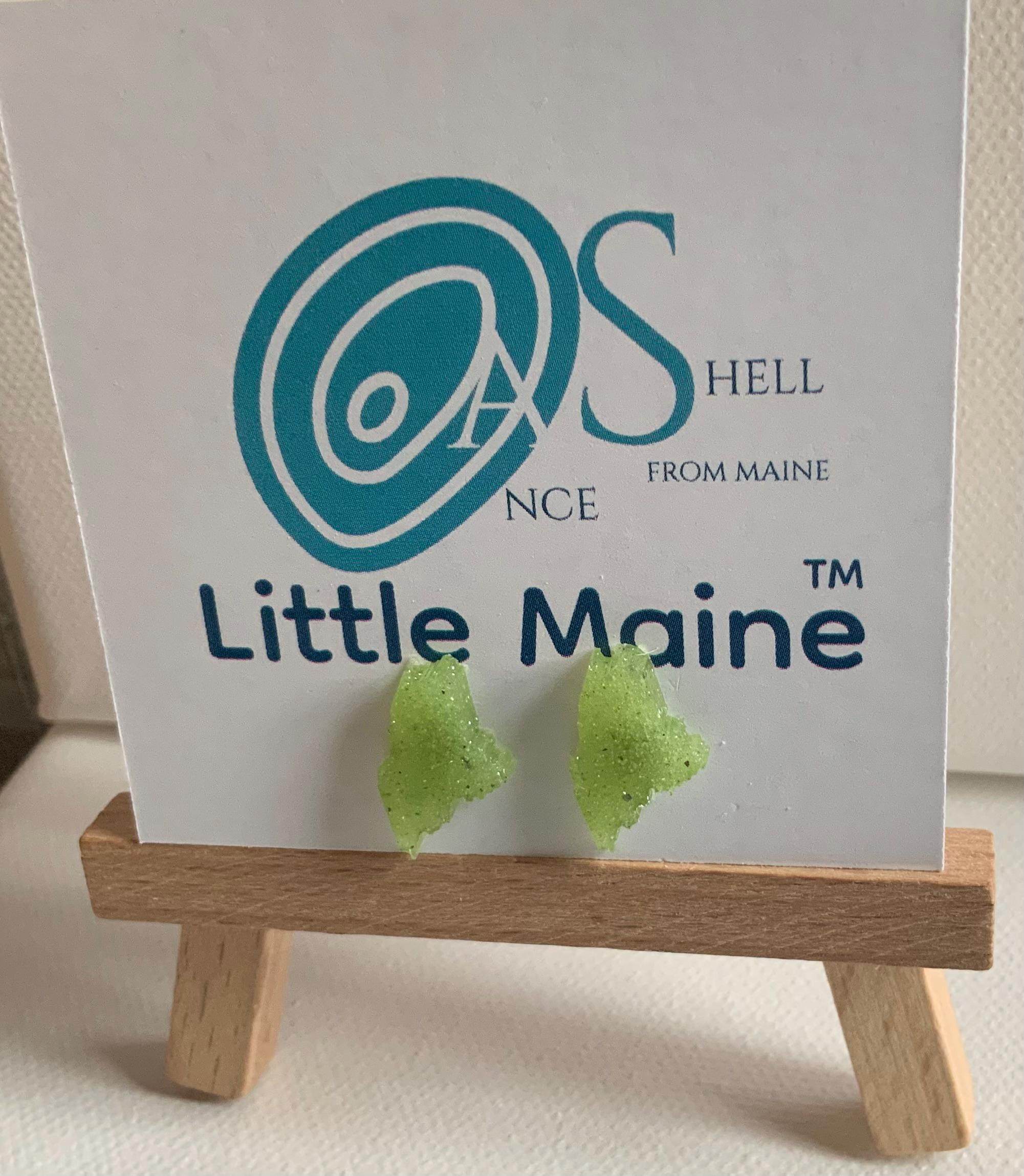 Green “Little Maine” stud earrings, stainless studs, nickel free. Crushed seaglass